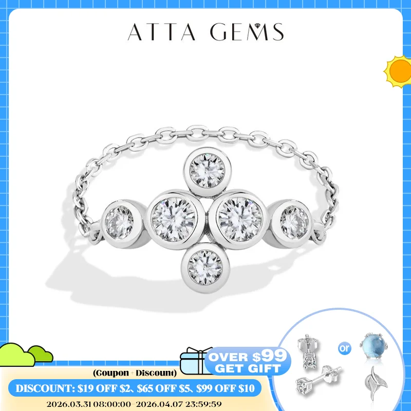 ATTAGEMS New Fashion Moissanite Chain Rings DVVS1 925 Sterling Silver Geometric Ring forWomen Anniversary Sale Fine Jewelry Gift