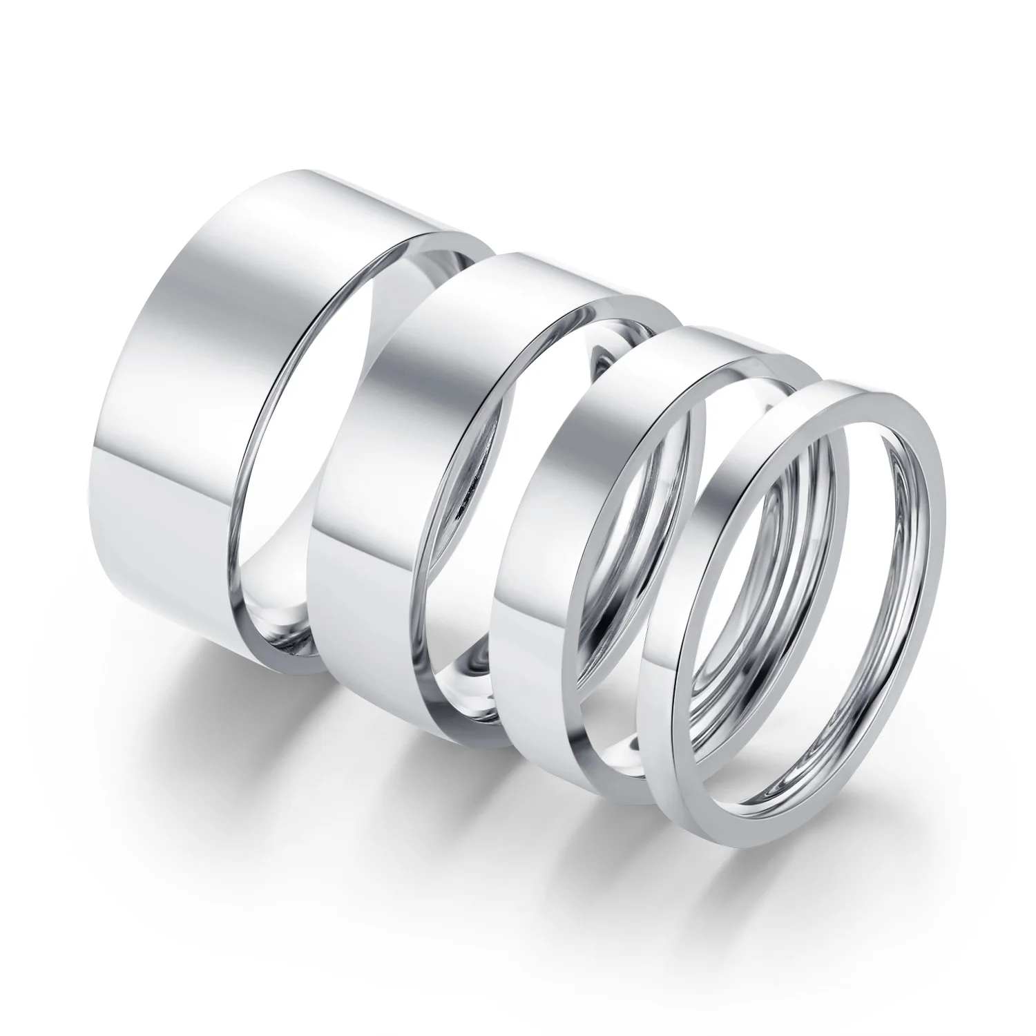 4 Pcs Matching Titanium Steel Rings for Couples, 2/4/6/8mm Width Silvery Band, Wedding Engagement Promise Gift for Him and Her