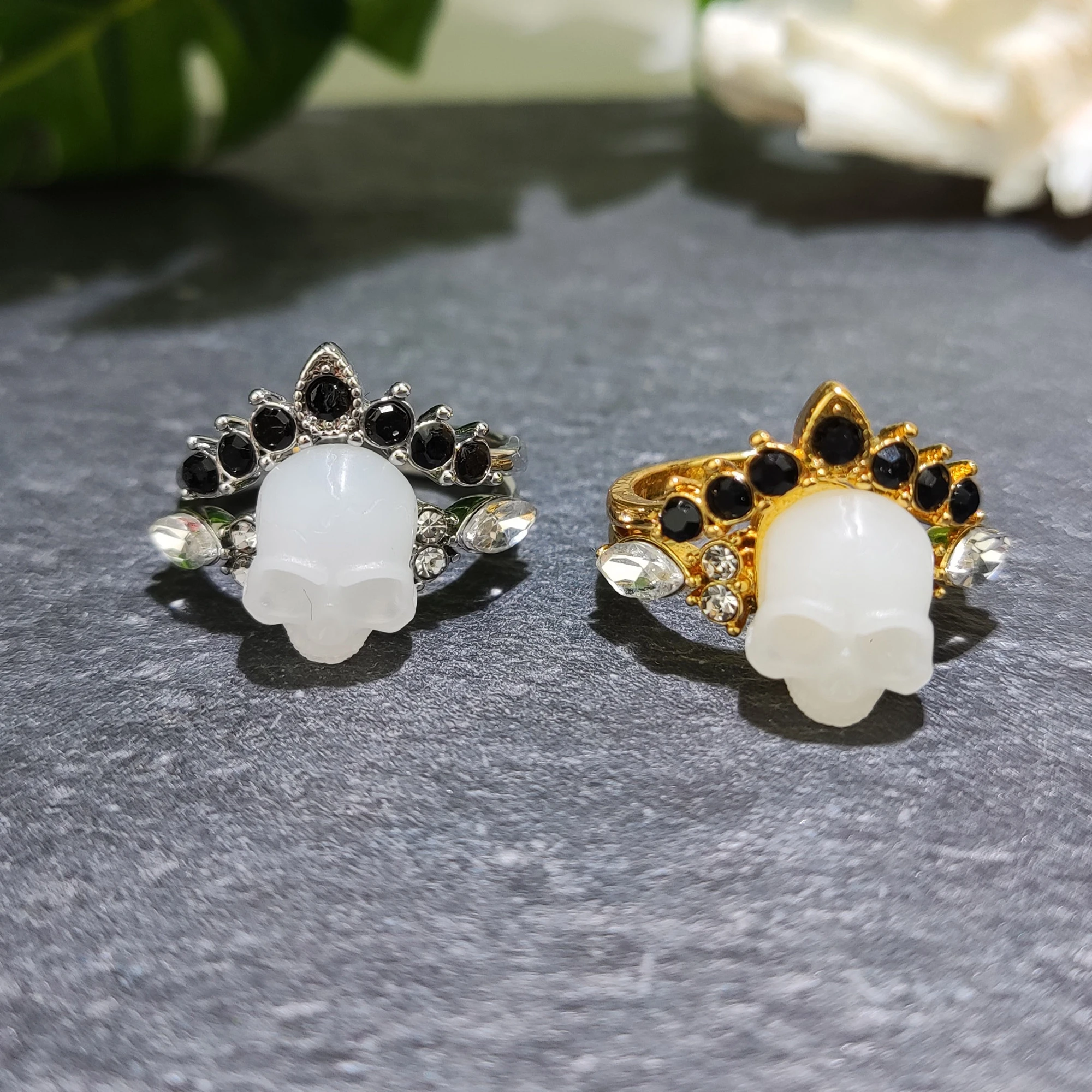 Skull Resin Ring With Matching Crown Ring,Stackable Rings Set,Gothic Rings,Unique Anniversary Gifts for Her,Witchy Jewelry