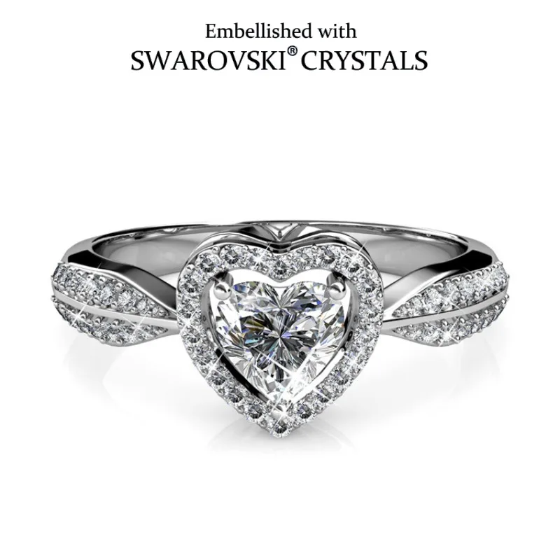 Anniversary Valentine Heart Crystal Ring Embellished with Swarovski Crystals Copper Rose Gold Romantic Gift for Her
