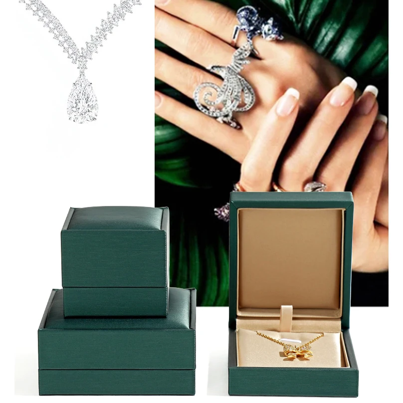 Necklace Display Box Soft Leather Ring Earrings Bracelet Box Jewelry Storage Box Green Velvet Interior For Gift For Her Travel