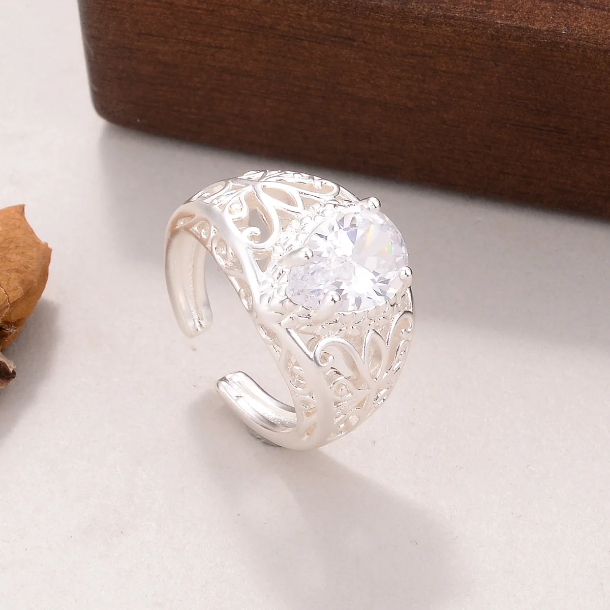 Elegant Vintage Silver Plated Ring for Women, Chic High Quality Cubic Zirconia Ring for Party Perfect for Birthday Gift for Her