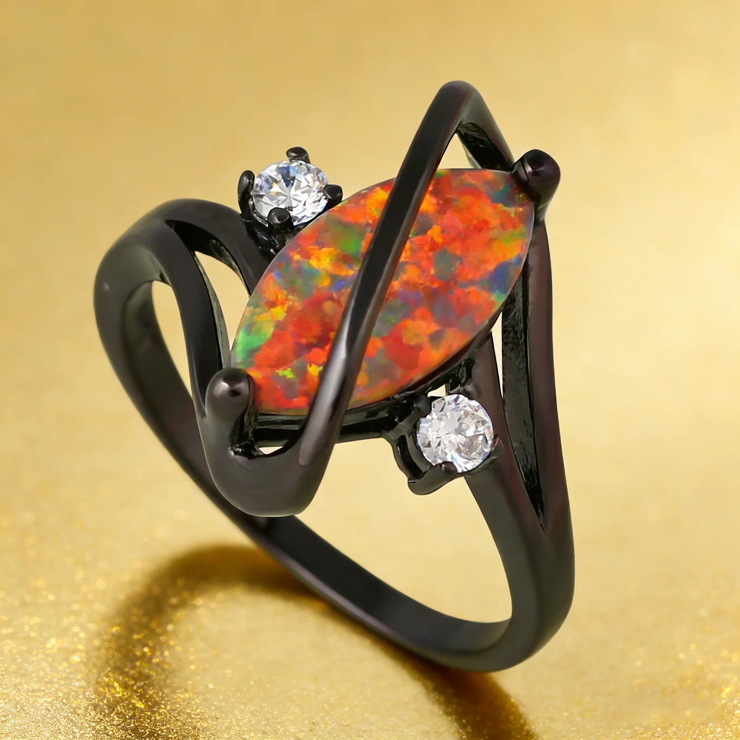 Valentine Wedding Anniversary Romantic Ring Gift for Her,Multicolor Opal White Zircon Fashion Jewelry For Women Cocktail Ring