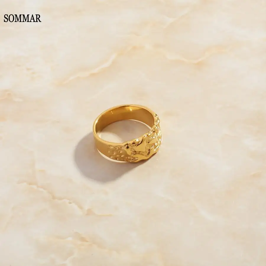 SOMMAR Best Gift 18KGP Gold plated size 6 7 8 female rings for women 2024 Irregular texture ring prices in euros christmas gift