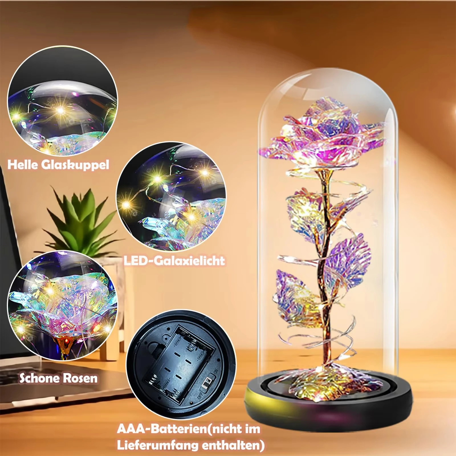 Artificial Rose LED Light Aluminum Glass Eternal Flower Party Supplies Simulation Decoration Anniversary Christmas Women's Gifts