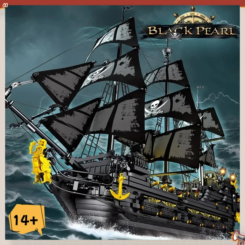 4708PCS Black Pearl Pirate Ship Model Building Blocks Movie Skeleton Adventure Boat Assembly Bricks Set Kids Toys Birthday Gifts