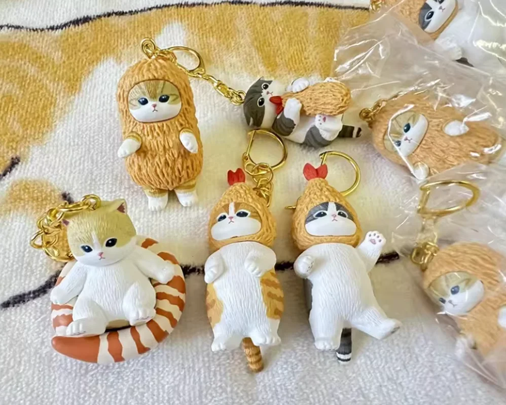 Mufosand Fried Shrimp Shark Cat Keychain Blind Box Backpack Pendant Collectible Pvc Action Figure Trendy Toys Birthday Gift