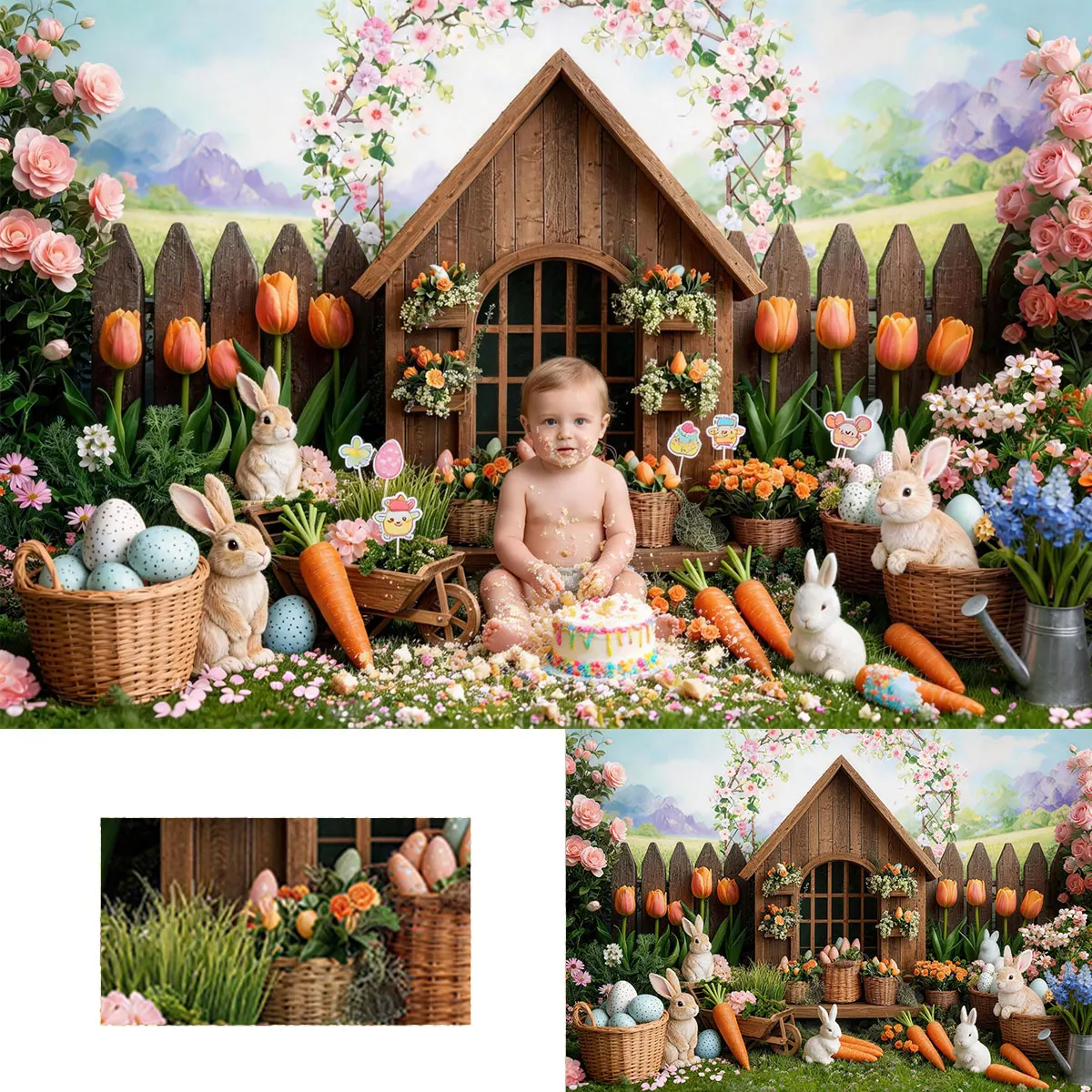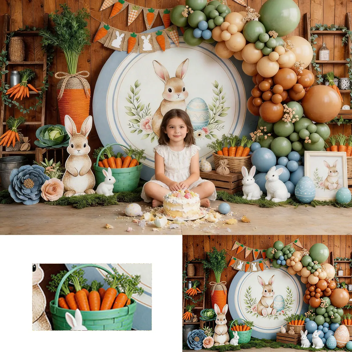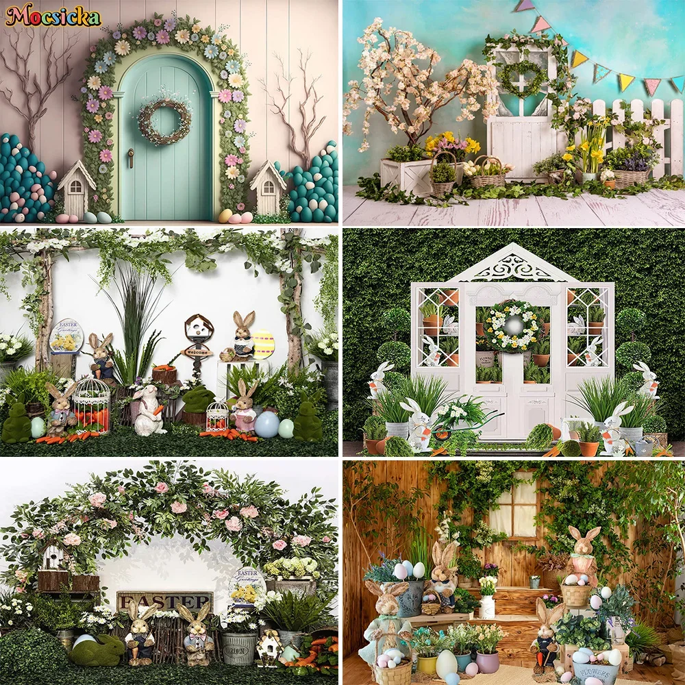 LS Easter Garden Wooden Door WIth Carrots Backdrops Kids Cake Smash Baby Photography Child Photocall Spring Backgrounds