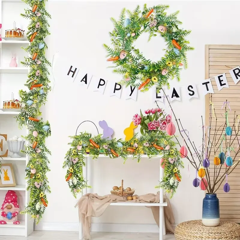 175cmEaster Artificial Egg and Carrot Vine Garland Indoor Holiday Decoration for Cake Wall Ladder FireplaceFront Door Home Decor