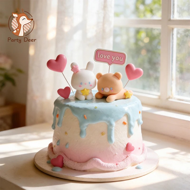 Cake Toppers Rabbit Bear Heart Love House Carrot Cake Decoration for Birthday Party Supplies Decoration Gifts