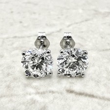 Spectacular pair of four-prong martini 3 carat lab grown diamond stud earrings crafted in 14 karat white gold with push backs. E-F color VS1-VS2 clarity. Note: This item has been appraised and inspected by a jewelry specialist and certified gemologist (GIA...