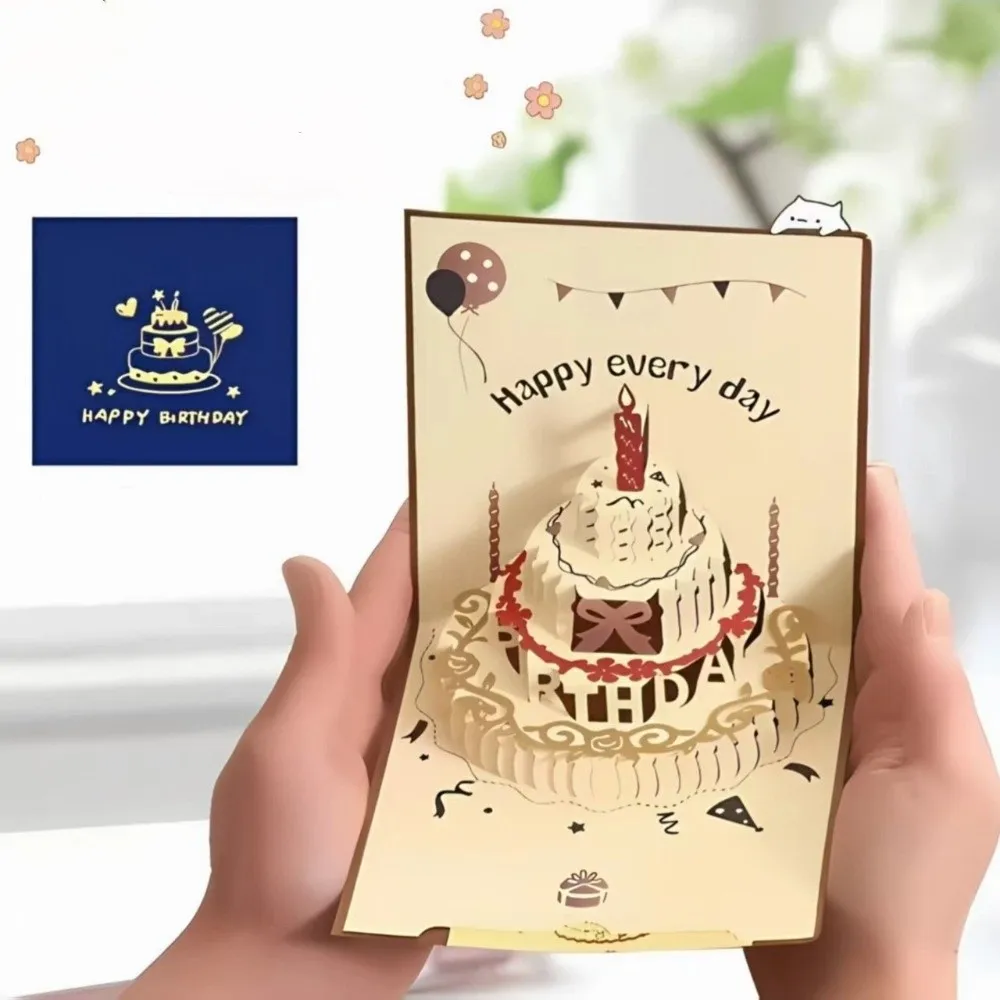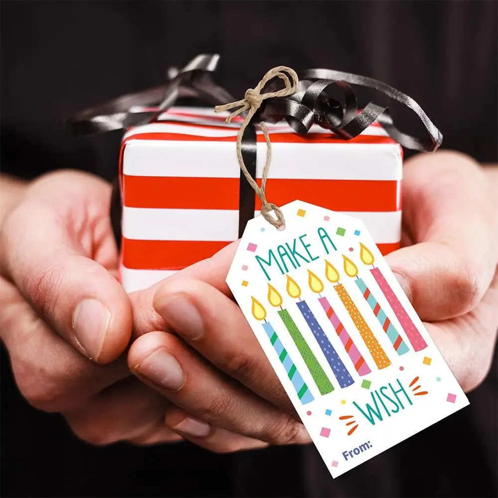 60PCS Happy Birthday Hanging Tags Multicolor Paper Decorative Labels Cartoon Cake Balloons with Ropes Message Card