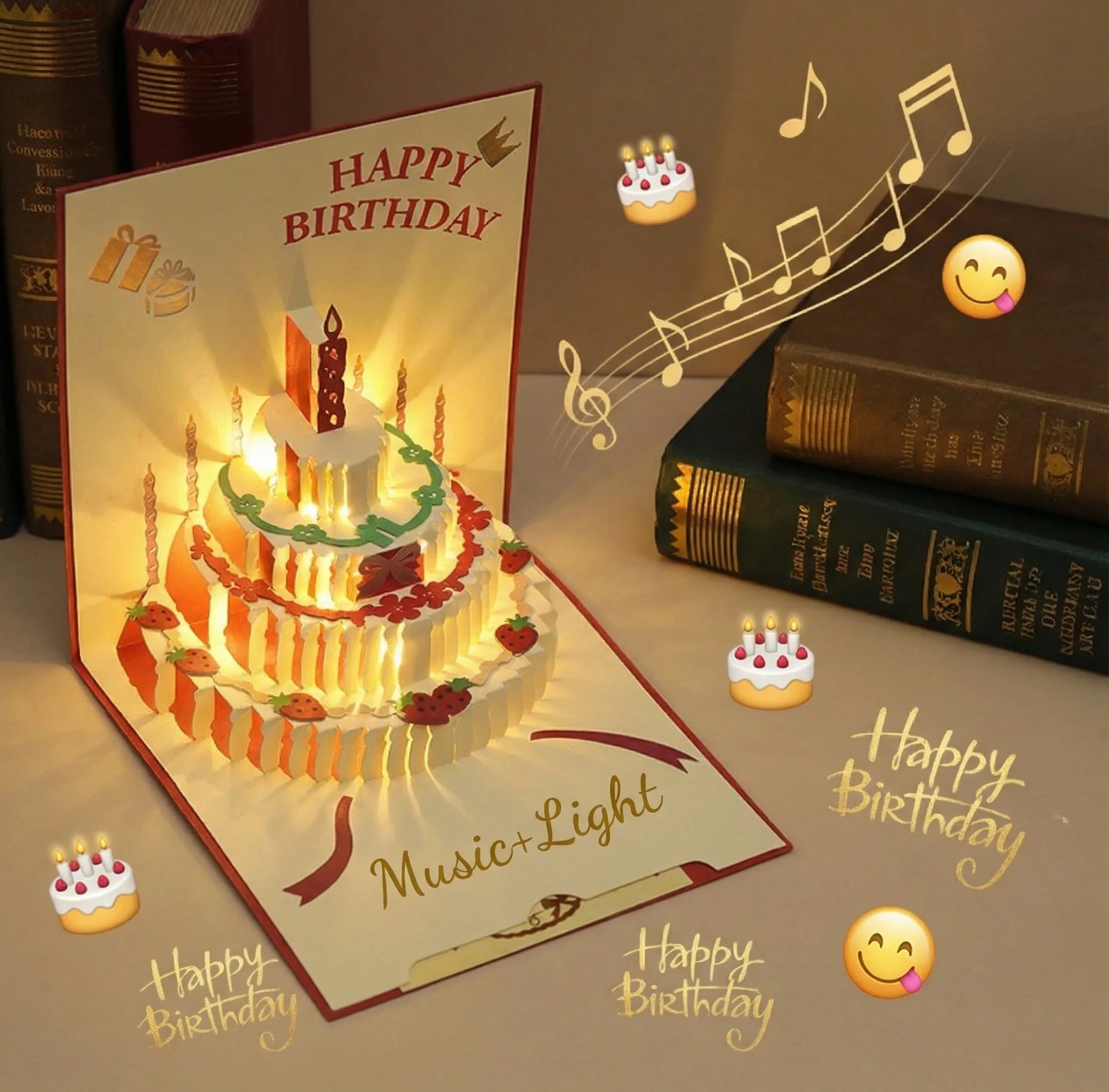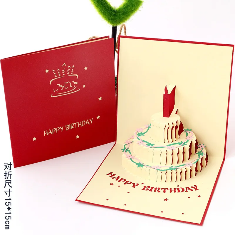 Cake Creative Greeting Card Happy Birthday Party Gift Message Cards Party Gifts 3D Happy Birthday Greeting Card