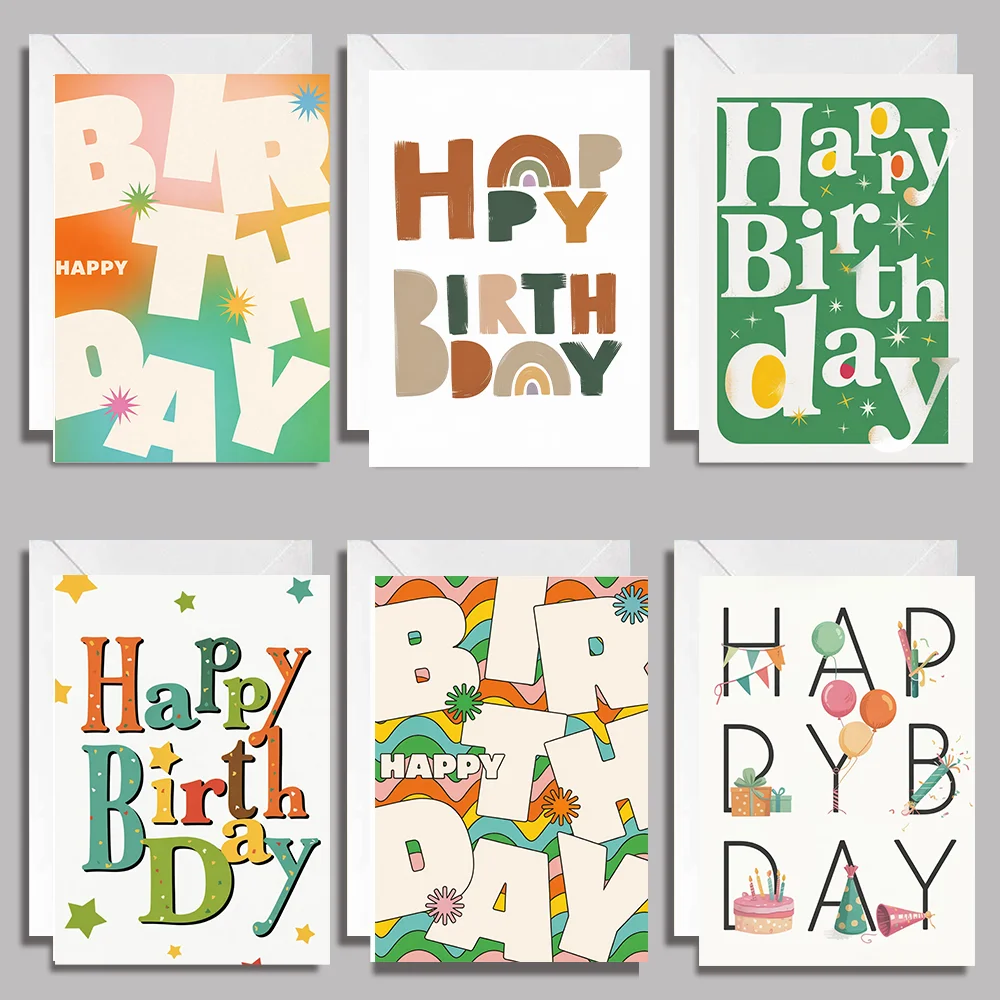 Happy Birthday Greeting Card Party Gift Cake Flowers Card Festive Celebration Message Card Blank inside for Father's Day