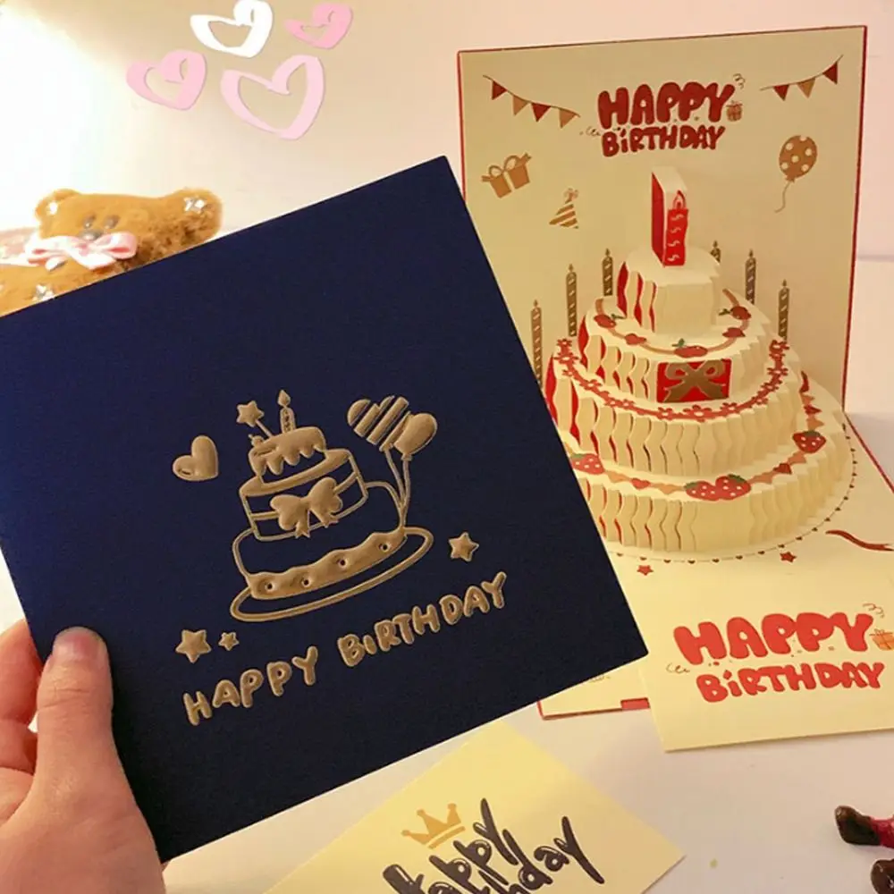 Folding 3D Happy Birthday Card Four-Layer Cake with Envelope Birthday Cake Card Postcard Surprise Gift Message Cards Gift