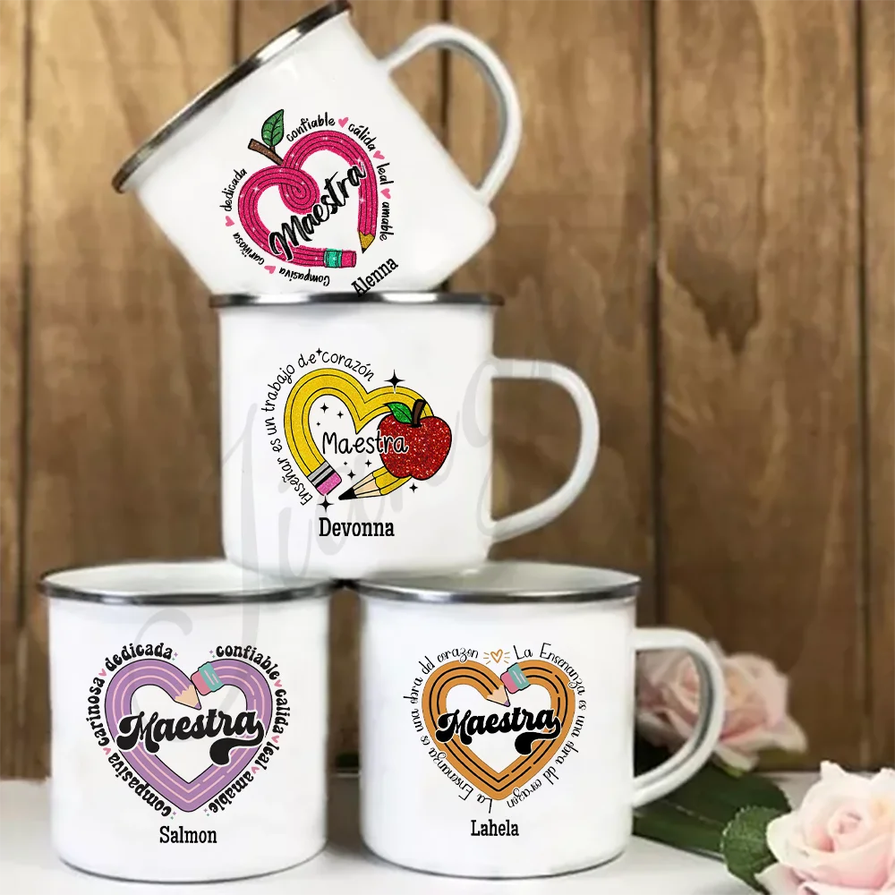 Heart Pencil Maestra Printed Enamel Mug Custom Name Coffee Cups Handle Cup Personalized Custom Teacher's Day Gifts for Teacher