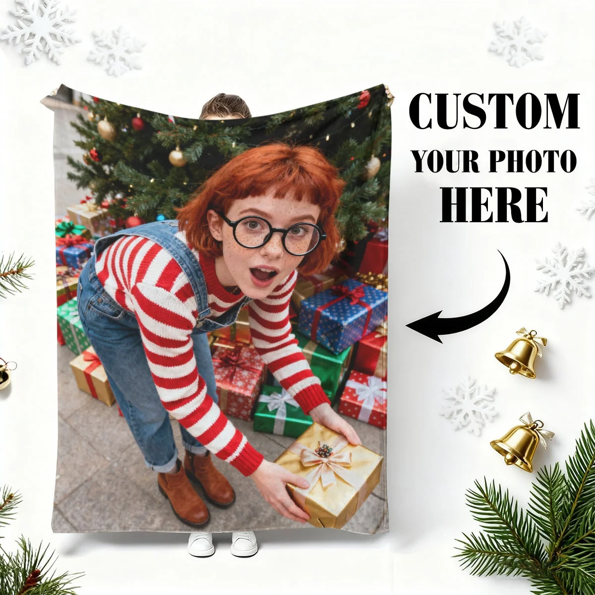 Christmas Custom Couple Christmas Scene Photo Flannel Blanket - High-Definition Print That Doesn'T Fade, Soft and Warm, Machine Washable, Suitable for Bedroom Beds, Watching Shows on the Sofa, Christmas Travel Backup - 100% High-Quality Polyester - Perfect as a Romantic Christmas Gift for Boyfriend/Girlfriend