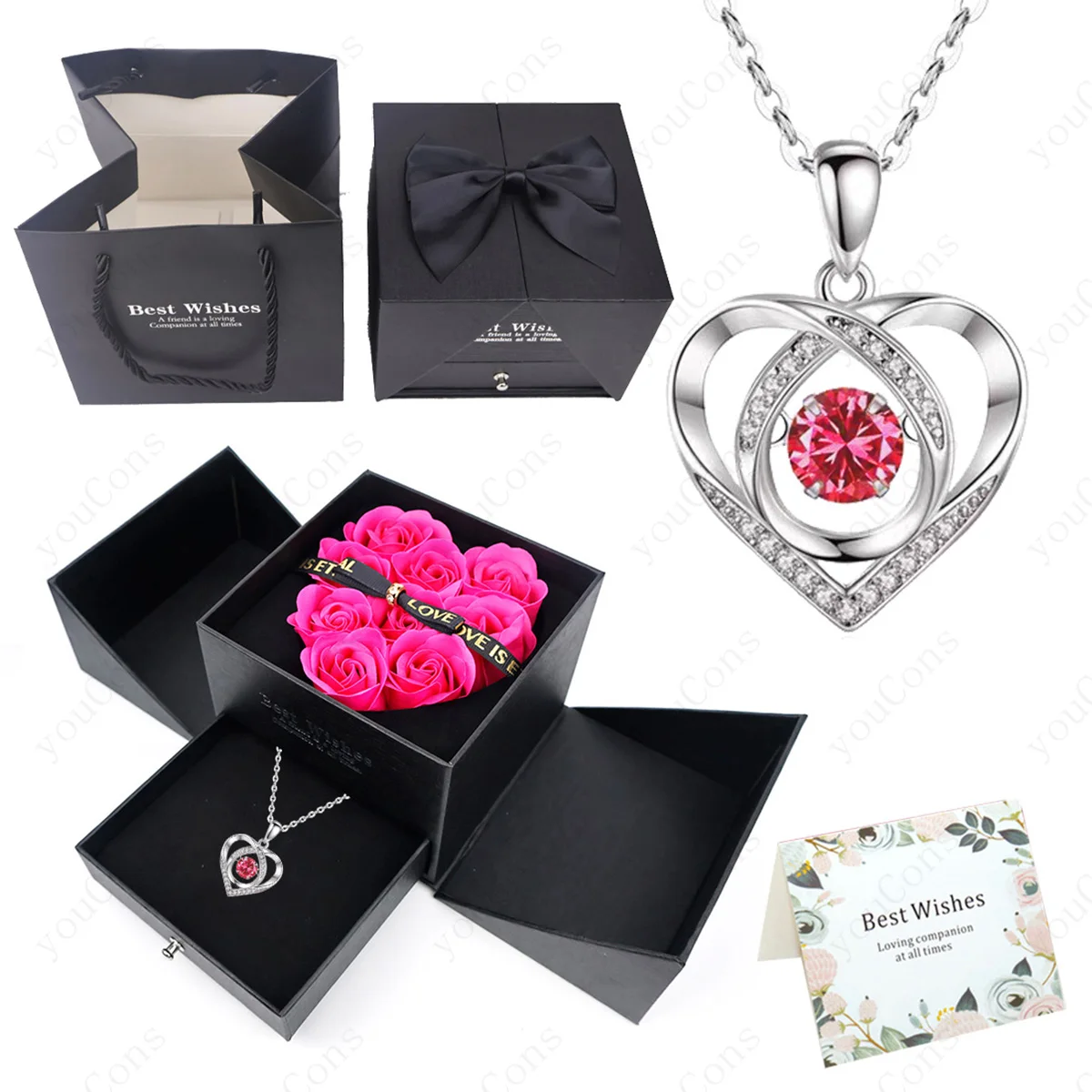 Luxury Heart Necklace Pendant With Bow Rose Gift Box For Women Wife Girlfriend Valentine Christmas Day Birthday 2026 Jewelry