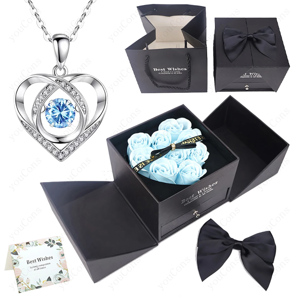 Luxury Heart Pendant Necklace With Bow Rose Gift Box For Women Girlfriend Wife Christmas Valentine Day Birthday 2026 Jewelry