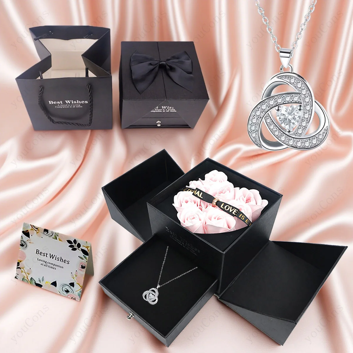 Purple Zircon Necklace With Purple Rose Gift Box Exquisite Gift Jewelry Set For Wife Girlfriend Christmas Valentine's Day Gift