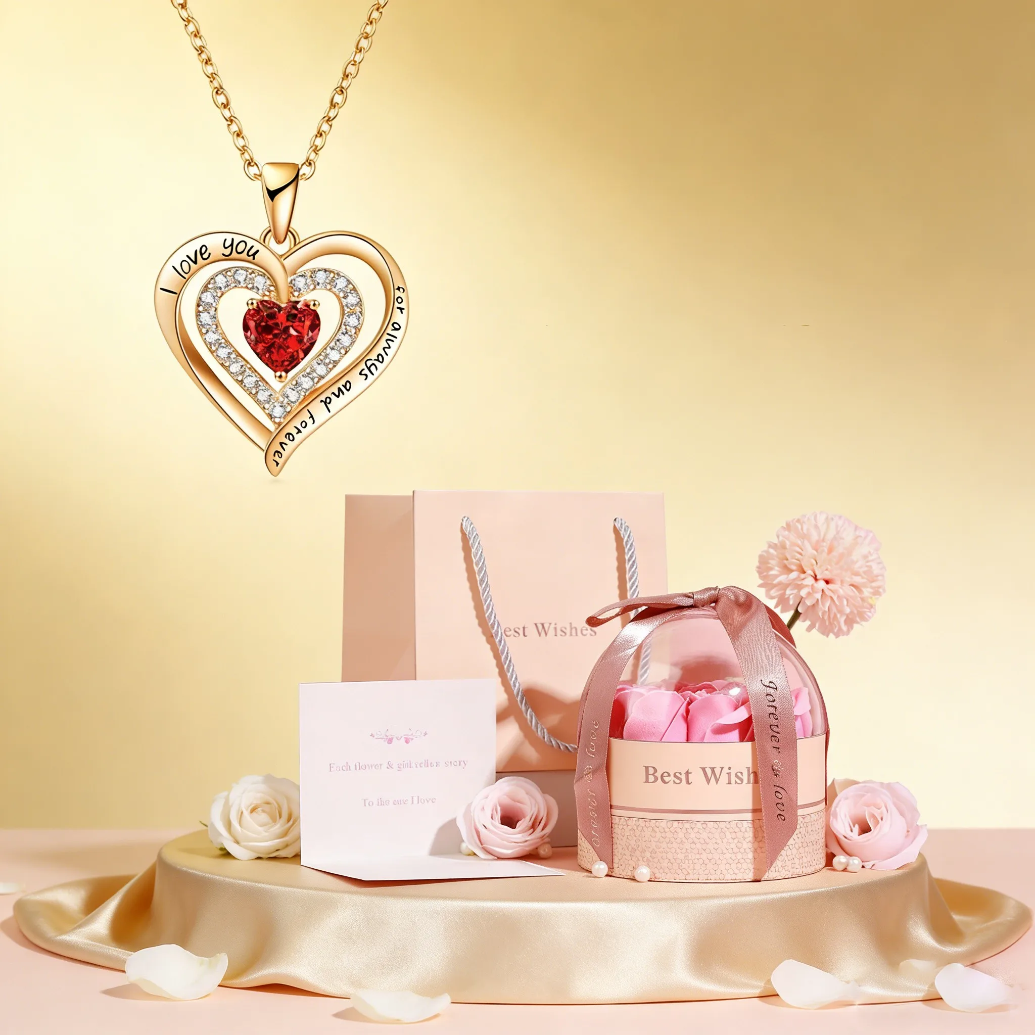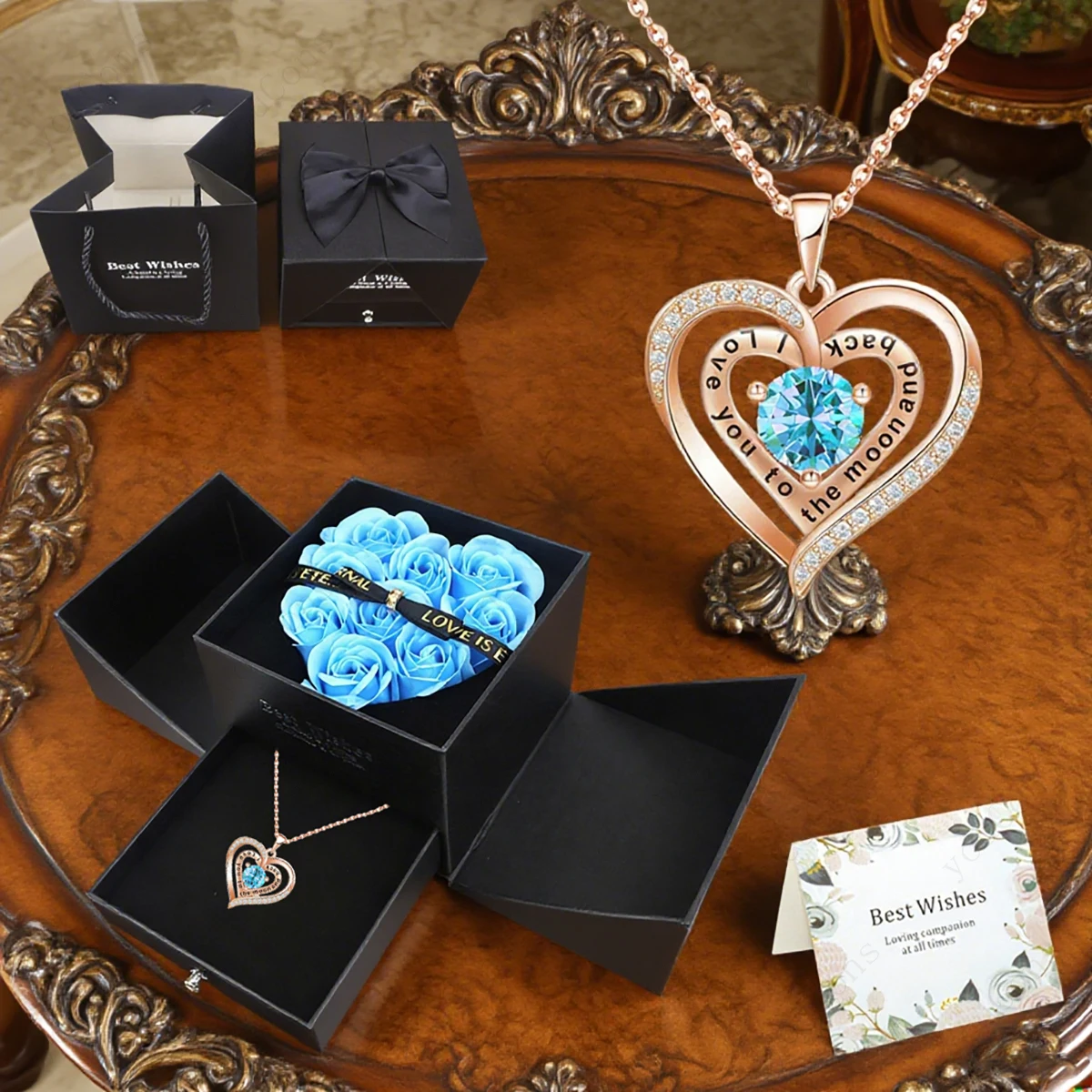 Heart Zircon Pendant Necklace With Red Rose Gift Box 2026 Jewelry For Women Wife Girlfriend Christmas Valentine Day Birthday