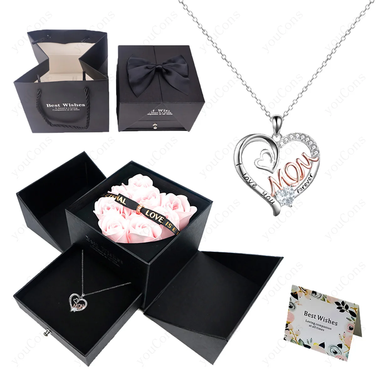 Luxury Heart Necklace Pendant With Red Rose Gift Box For Women Wife Girlfriend Christmas Valentine Day Birthday 2026 Jewelry