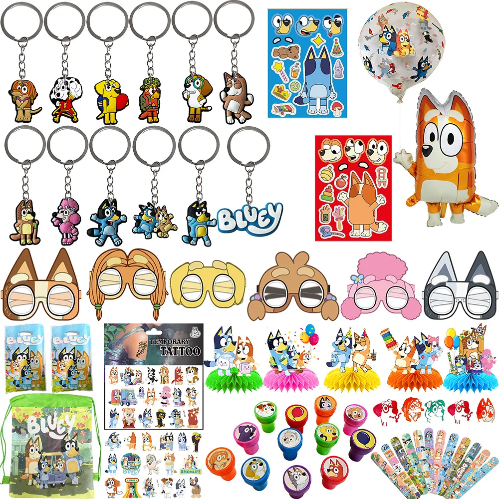 Bluey Bingo birthday party small gifts keychains tattoo stickers stamps balloons photo props gift stuffed bags gifts for guests