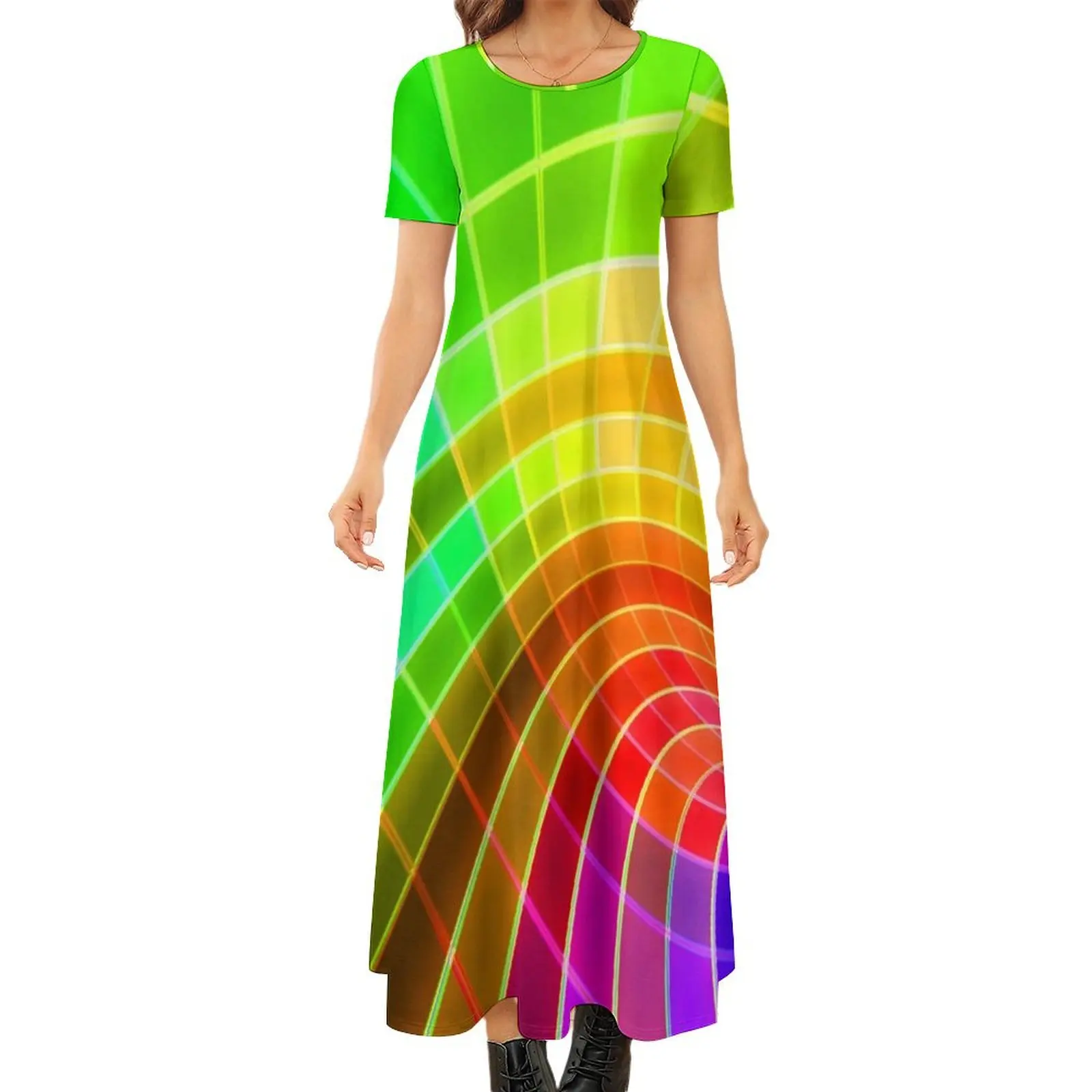 Bright Rainbow Dress Unique Colorful Swirl Korean Fashion Bohemia Long Dresses Womens Cute Maxi Dress Birthday Gift