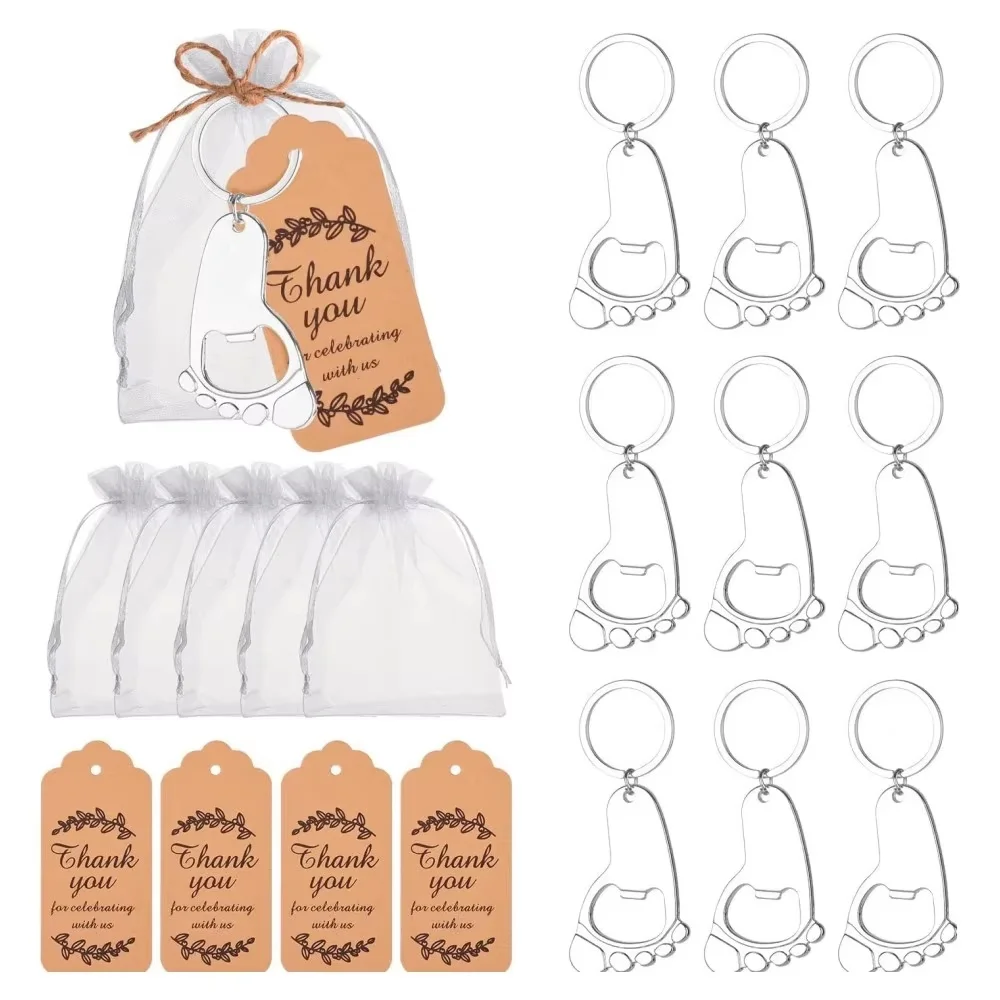 10-50pc Baby Footprint Bottle Opener Key Buckle Gift Bags Card Kids Birthday Party Favors Baby Shower Souvenirs Gifts for Guests