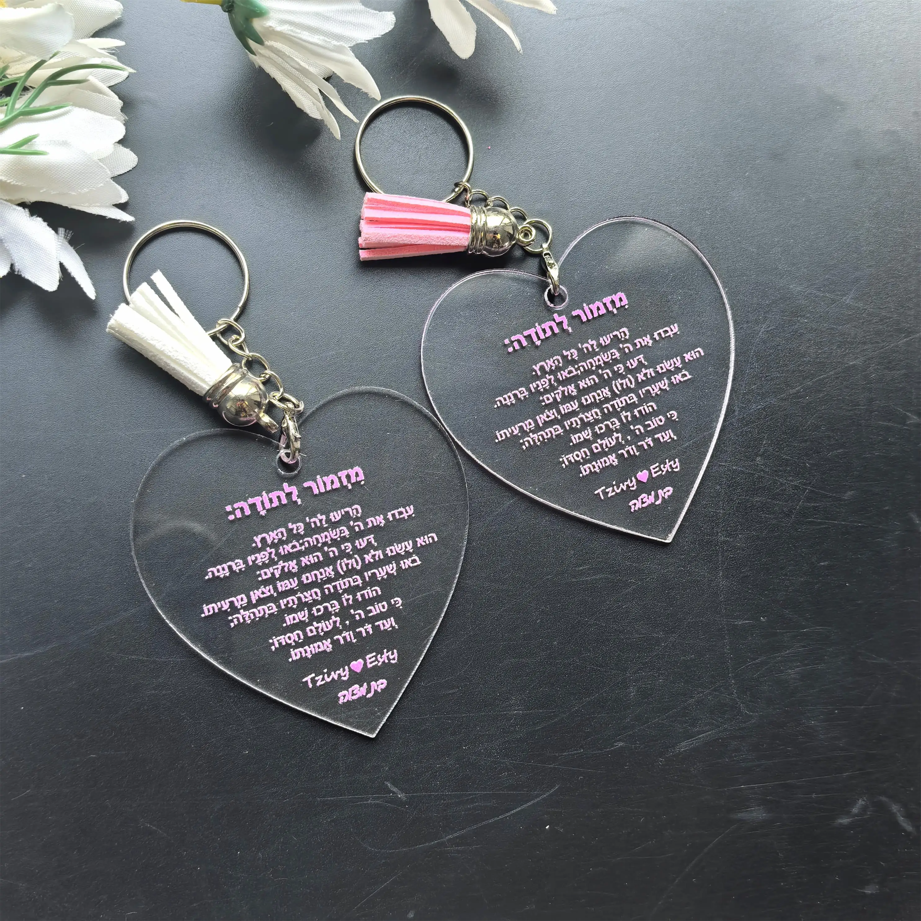 Heart Shape Personalize Acrylic Keychain,Custom Inscription,Wedding Souvenir Bar,Mitzvah Guest,Hebrew Hymn of Thanksgiving