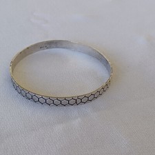 2.5" wide opening and approx 7.25" inside circumference. Marked Sterling. Wear alone or stack together with other bangles. Photos taken in natural light.