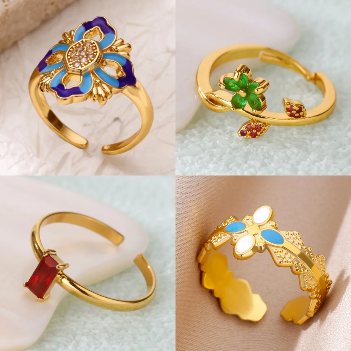 Delicate Flower Zirconia Women's Rings Gold-Plated Stainless Steel Leaf Party Jewelry Ring Gift