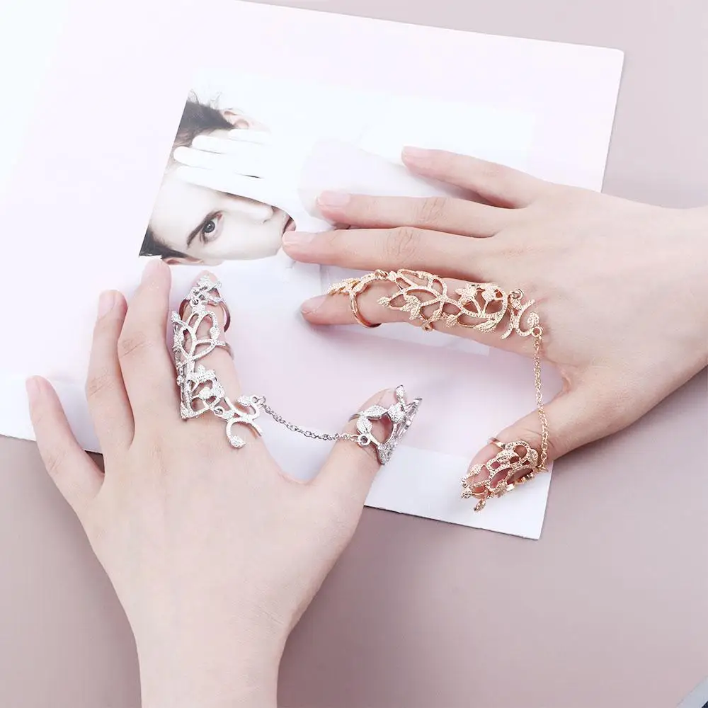Trendy Elegant Chain Temperament Flower Simple Hollow Finger Jewelry Women Opening Ring Korean Finger Ring