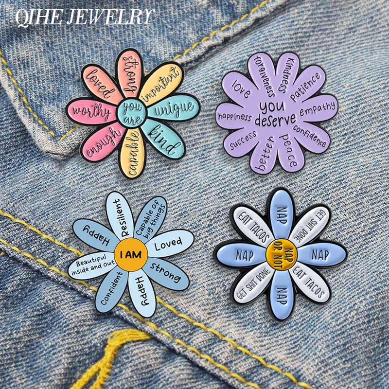 Motivational Flower Brooch Enamel Pins Encouraging Quotes You are Enough Worthy Strong Brooch Bag Clothes Badge Gift for Friends