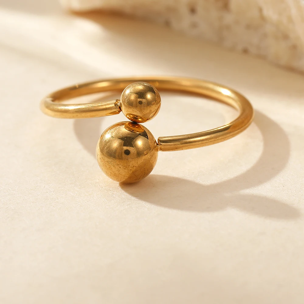DOTIFI Stainless Steel Exaggerated Double Ball Ring Women Men Open Adjustable Aesthetic Fashion Ring Jewelry Creative Gifts