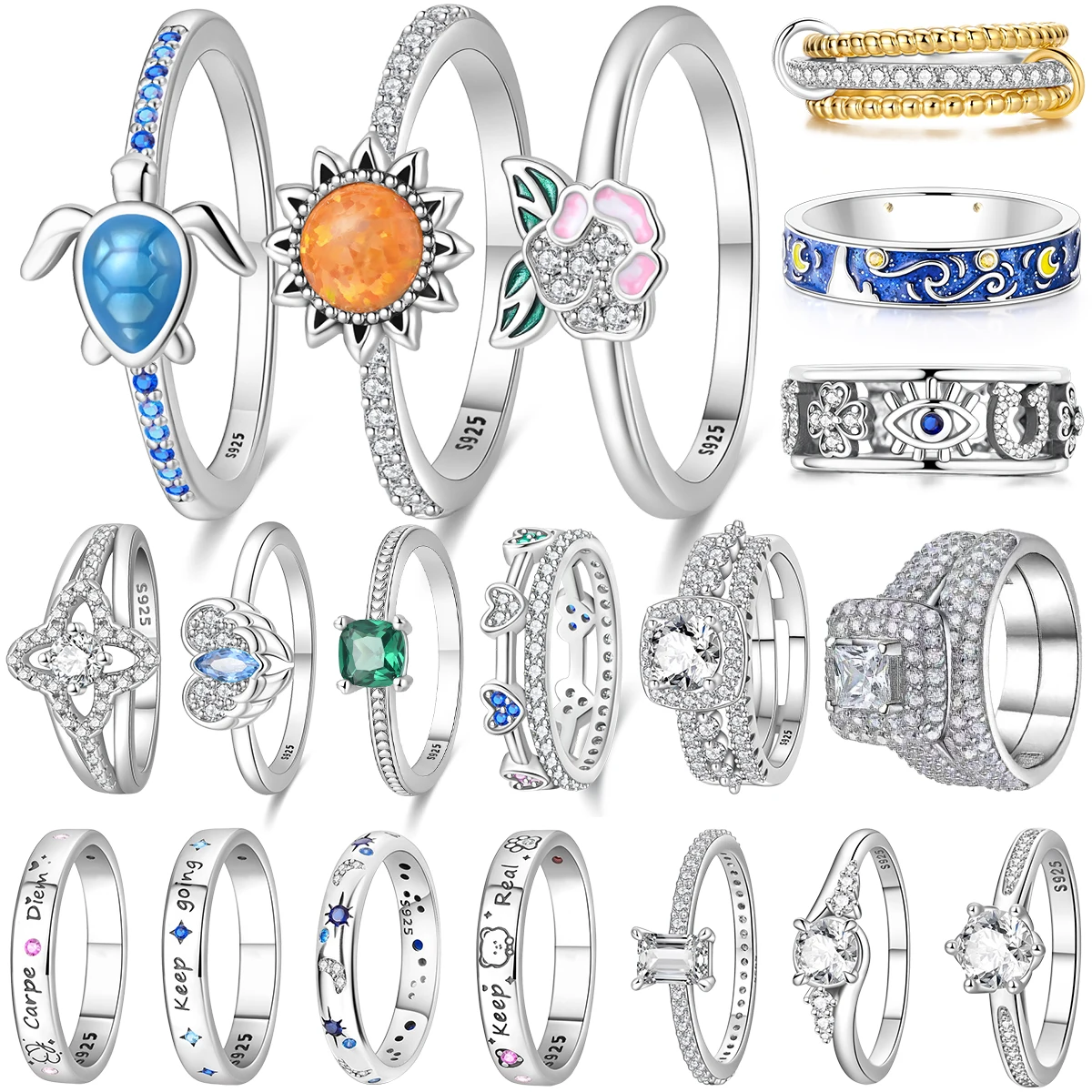 Charm 925 Sterling Silver 7-10# Simple Round Ring Women's Fashion Engagement Party Jewelry Accessories